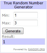 The winner will be drawn using a random number generator.